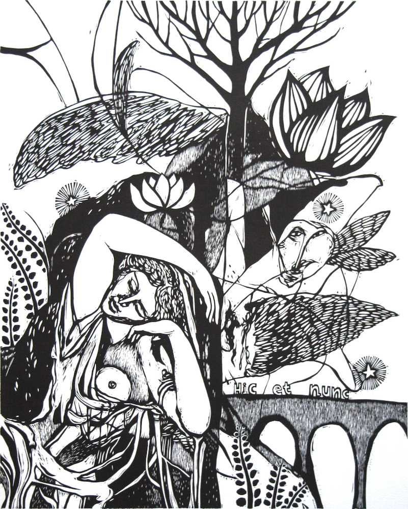 L’exposition de Raúl Villullas à la Galerie Anaphora et la première exposition personnelle de l’artiste. Cette exposition rétrospective rassemble des oeuvres sur une douzaine d’années, à partir de 2013. Il s’agit avant tout de gravures sur bois, de quelques peintures (acrylique sur papier) choisies parce qu’elles sont à l’origine d’un bois, de rares pointes sèches sur rhénalon et de petites aquatintes. Témoignage de l’artiste sur les thèmes de ses oeuvres : « Mon oeuvre s’appuie sur un imaginaire personnel fondé sur le goût de la poésie, de la littérature et de la musique ; les références à la mythologie et aux symboles y sont nombreuses. Mes compositions présentent des personnages, des visages, souvent des arbres, des oiseaux, des ruines : elles s’appuient sur des associations d’éléments qui comportent toujours une forte charge de sens, tout en donnant lieu à des interprétations ouvertes, suggérant de multiples histoires et des narrations riches d’imagination et de poésie. »